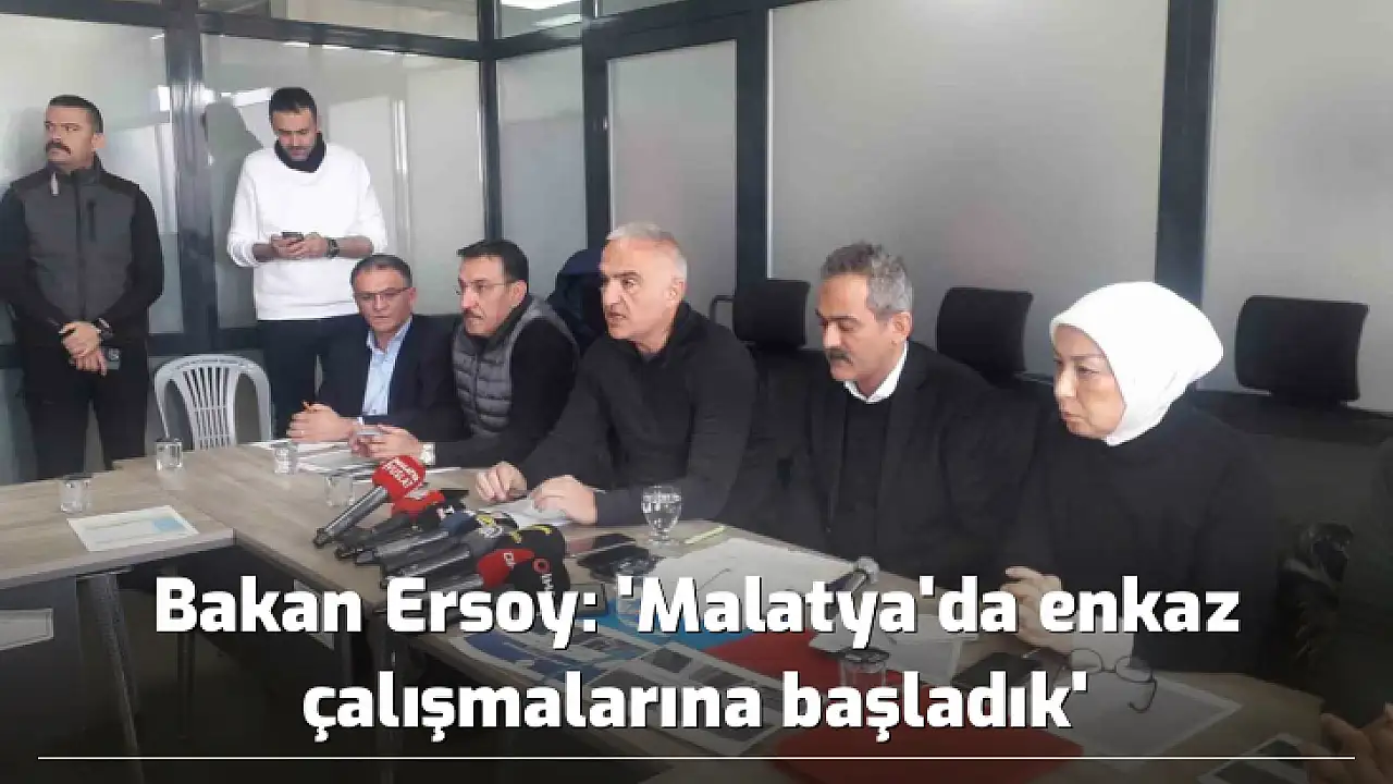 Kültür ve Turizm Bakanı Mehmet Nuri Ersoy ile Milli Eğitim Bakanı Mahmut Özer, Malatya'da AFAD Koordinasyon Merkezinde bilgilendirme toplantısı yaptı. Toplantıda konuşan Bakan Ersoy, bugün itibarıyla Malatya'da enkaz kaldırma çalışmalarına başlandığını söyledi.