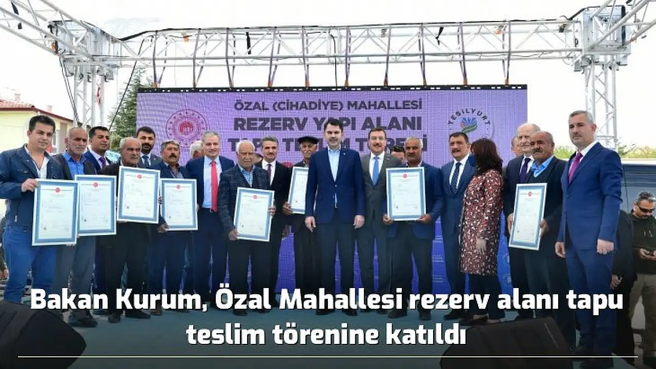 Özal Mahallesindeki İmam Hatip Ortaokulu bahçesinde düzenlenen Rezerv Alanı Tapu Teslim Törenine, Çevre, Şehircilik ve İklim Değişikliği Bakanı Murat Kurum, Bakan Yardımcıları, Vali Aydın Baruş, AK Parti MKYK Üyesi ve Milletvekili Bülent Tüfenkci, AK Parti Milletvekili Ahmet Çakır, Büyükşehir Belediye Başkanı Selahattin Gürkan, Yeşilyurt Belediye Başkanı Mehmet Çınar, AK Parti İl Başkanı İhsan Koca, MHP İl Başkanı Mesut Samanlı, AK Parti İlçe Başkanları, Kadın ve Gençlik Kolları Başkanları, Kurum Müdürleri, Sivil Toplum ve Meslek Örgütleri Başkanları, Mahalle Muhtarları ve Özal Mahalle sakinleri katıldı.