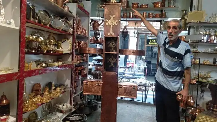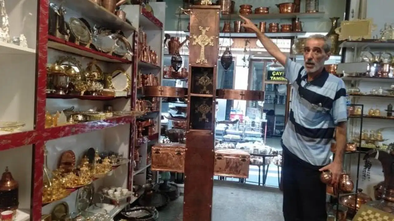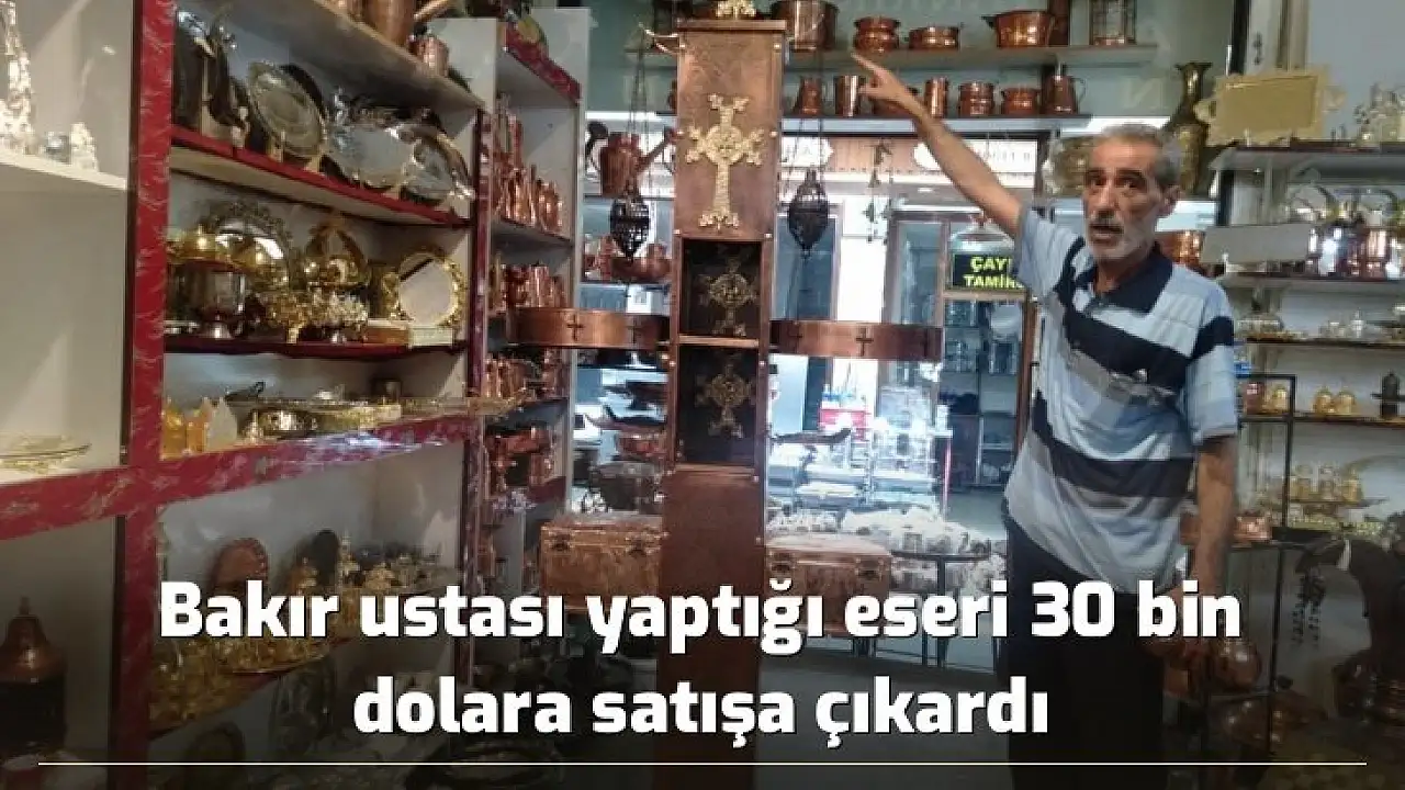 Diyarbakır'da 50 yıla aşkın bakır ustalığı yapan Ahmet Altun'un kiliseler için yaptığı adaklık 30 bin dolara satışa sunuldu.