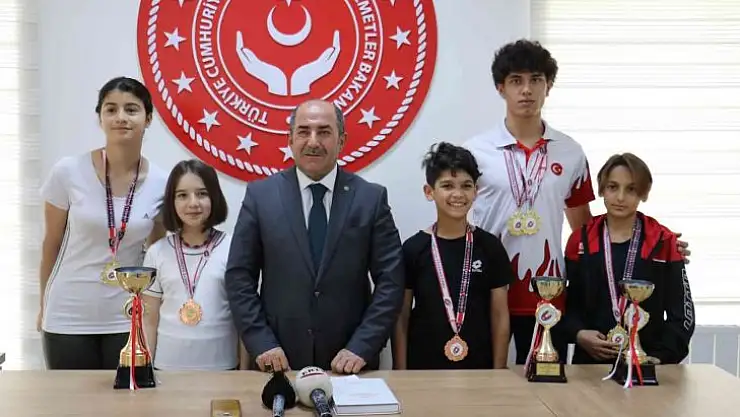 Malatya Aile ve Sosyal Hizmetler İl Müdürü Galip Sökmen, 7.Türkiye Badminton Şampiyonasında Malatya'yı temsil ederek şampiyon olan Abdul Samet Tekedereli, Azra Gül Özcan ve dereceye giren sporcuları makamında ağırlayarak hediye takdim etti.