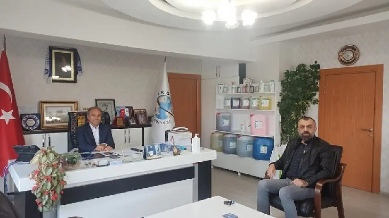 Malatya Tarım Platformu ve Koyun Keçi Yetiştiriciler Birliği Başkanı İhsan Akın, Arguvan Belediye Başkanı Mehmet Kızıldaş'ı makamında ziyaret ederek, takımın 3. Lige çıkması nedeniyle tebrik etti.
