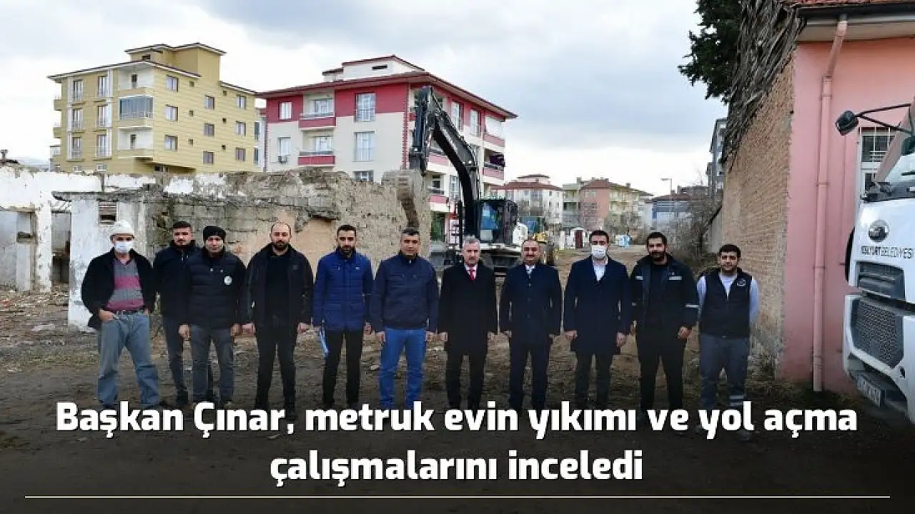 Başkan Çınar, metruk evin yıkımı ve yol açma çalışmalarını inceledi