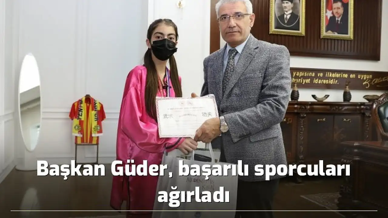Sakarya’da 15-17 Aralık 2021 tarihleri arasında düzenlenen Wushu Kung Fu Geleneksel Türkiye Şampiyonasına Malatya’dan katılan öğrenciler 10 altın, 3 gümüş ve 5 bronz madalya alarak dönmüştü. Şampiyonada büyük başarı gösteren ve Türkiye şampiyonu olan Orhan Gazi Ortaokulu 8. sınıf Berinay Nur Akdoğan ve Türkiye 3.sü olan Orhan Gazi Ortaokulu 6. sınıf öğrencisi Melisa Gelmez Battalgazi Belediye Başkanı Osman Güder’i makamında ziyaret etti. Okul Müdürü Mehmet Olcay Ülger, Okul Müdür Yardımcısı Muhittin Baydede ve Antrenör Ali Ülger’in de katıldığı ziyarette Başkan Güder, öğrencilerle başarıları üzerine sohbet etti. Alınan başarıyla öğrencilerin bütün Malatya’yı gururlandırdığını ifade eden Başkan Güder, “Wushu Kung Fu Geleneksel Türkiye Şampiyonasında öğrencilerimizin üstün başarı göstererek şampiyonlukları Malatya’mıza getirmeleri bizleri çok mutlu etti. Malatya şehrinin her platformda ön plana çıkması bizim için bir gururdur. Orhan Gazi Ortaokulu’ndan öğrencilerimizin başarısı özellikle de ilçemiz adına bizleri gururlandırdı. Yeni şampiyonların ilçemizde çıkması için bizler de gençlere destek oluyoruz. Gençlerimizin her alanda başarması önemli. Bizler sporcularımızın her zaman destekçisi olduk, olmaya da devam edeceğiz” dedi.