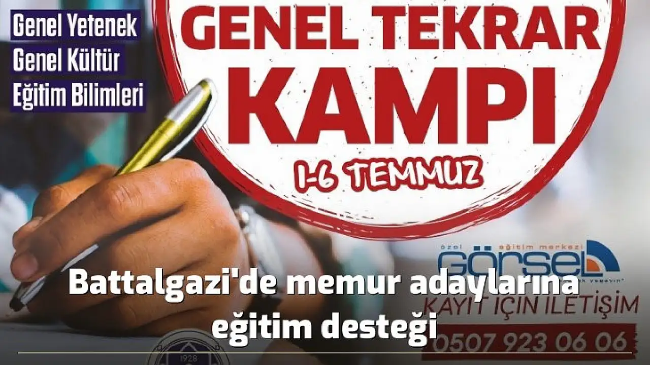 Her platformda Türkiye’nin aydınlık yarınları öğrencilerin yanında olan ve onlara her daim eğitim desteği sağladığı bildirilen Battalgazi Belediyesi, ilçede yine bir ilke imza attığı belirtildi. Battalgazi Belediye Başkanı Osman Güder’in talimatıyla harekete geçen Kültür ve Sosyal İşler Müdürlüğü, Kamu Personeli Seçme Sınavı’na hazırlanan öğretmen ve memur adayları için 1-6 Temmuz tarihleri arasında ‘KPSS Genel Tekrar Kampı’ düzenleyecek. Battalgazi Belediyesi ve Görsel Eğitim Merkezi işbirliği ile düzenleyecek olan eğitim kampında KPSS genel kültür, genel yetenek ve eğitim bilimlerinde alanlarında Türkiye’nin en yetkin eğitimcileri tarafından hızlandırılmış bir eğitim programına tabi tutulacak. Battalgazi Belediyesi Konferans Salonunda düzenlenecek olan eğitim kampı, KPSS’ye girecek adaylara büyük kolaylık sağlayacak. KPSS’ye girecek tüm adayların katılabileceği kamp ücretsiz olacak. 1 hafta boyunca devam edecek olan eğitim kampı, sabah 08.30’da başlayıp akşam 19.00’da sona erecek. Tüm derslerin tekrarının yapılacağı kampta uygulamalı soru çözümleri ile pratik yapılacak. Sınavda dikkat edilmesi gereken unsurların da anlatılacağı kampta, öğrenciler zorlandıkları konular hakkında öğretmenlere soru sorma fırsatı bulacak. Sınırlı kontenjana sahip kampa katılmak isteyen adayların, 05079230606 numaralı iletişim adresinden kayıt yaptırmaları gerekiyor.