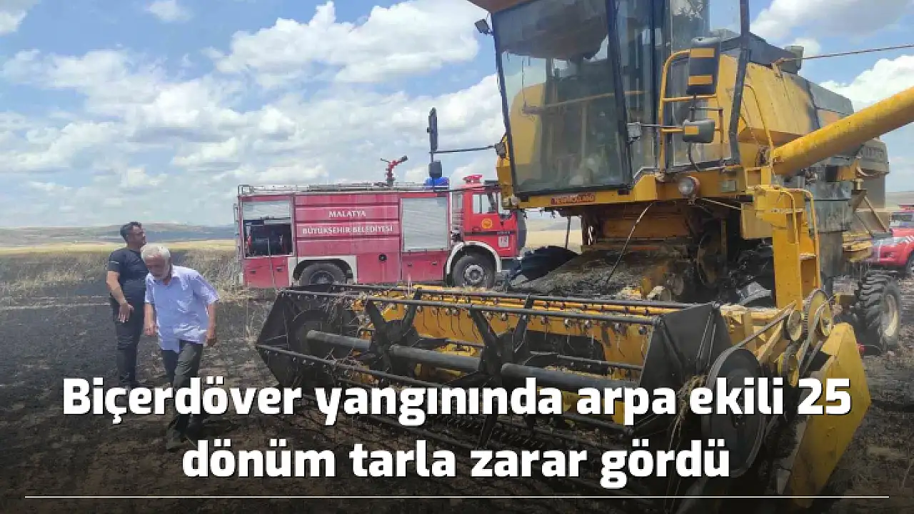 Malatya'nın Arguvan ilçesinde arpa ekili tarlada çalışma yapan biçerdöverden çıkan yangında 25 dönümlük alan zarar gördü.