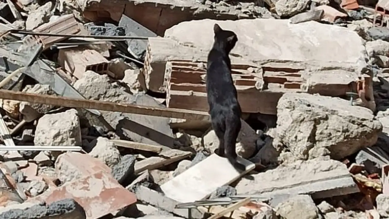 Malatya'da 6 Şubat depremlerinden yıkılan bir binanın enkazında mahsur kalan yavru kedi itfaiye ekipleri tarafından kurtarıldı.