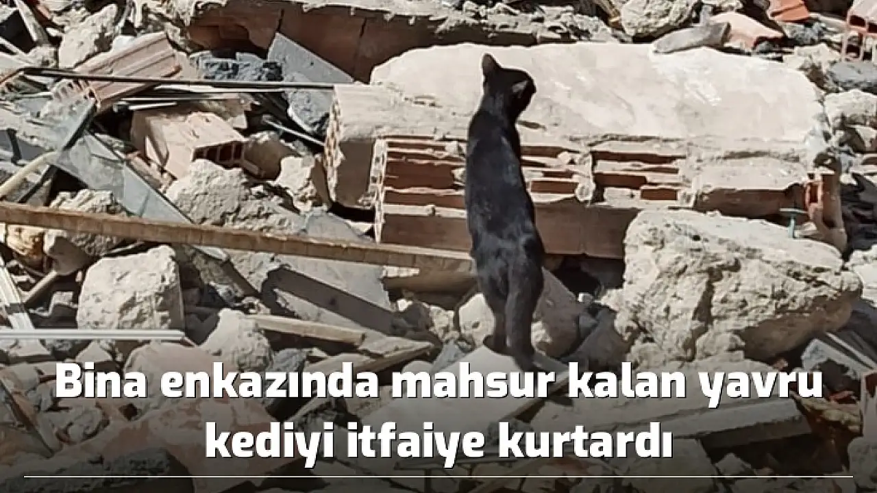 Bina enkazında mahsur kalan yavru kediyi itfaiye kurtardı