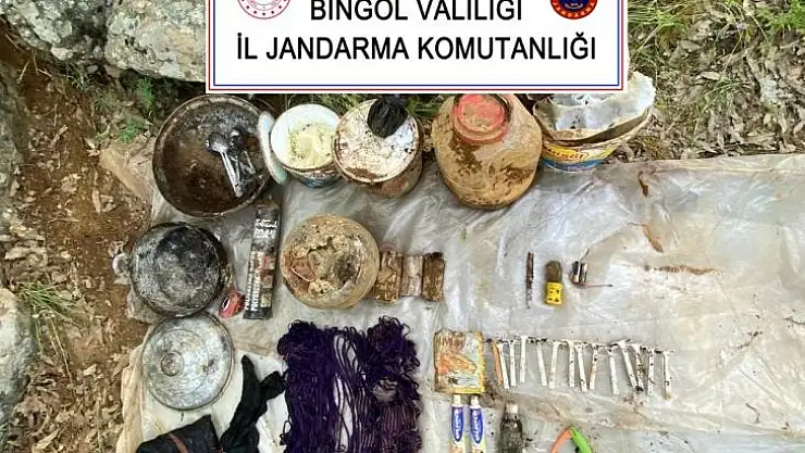 Bingöl'de jandarma tarafından icra edilen operasyonda bölücü terör örgütü PKK'ya ait 2 adet sığınak ve tüp içinde hazırlanmış EYP ele geçirilerek imha edildi.