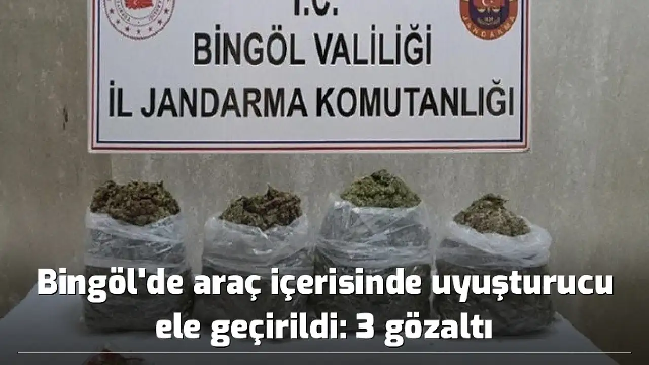 Bingöl'de jandarma ekiplerince yol kontrol noktasında durdurulan bir araç içerisinde 4 kilo kubar esrar maddesi ele geçirildi, 3 şüpheli şahıs gözaltına alındı.