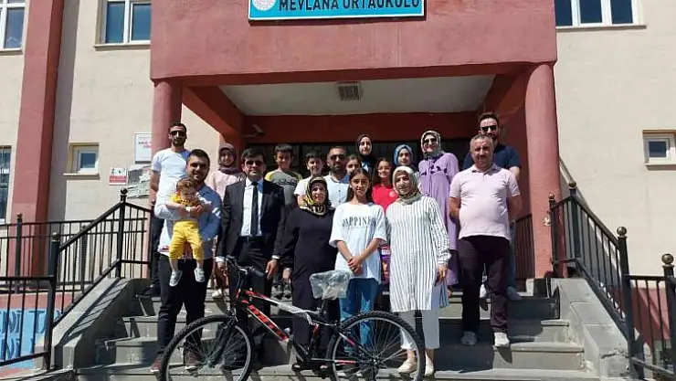Genç ilçesinde bulunan Mevlana Ortaokulu, başarılı öğrencileri ödüllendirmeyi ve teşvik etmeyi sürdürüyor. Bu çerçevede yıl boyunca akademik, sosyal, sportif ile kültürel alanda yaptığı il dereceleriyle adından söz ettiren 6’ncı sınıf öğrencisi İkra Saçık’a bisiklet hediye edildi.