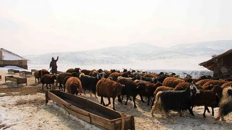 Bingöl'ün Solhan ilçesinde uzun yıllardır küçükbaş hayvan yetiştiriciliği yapan besicilerin kar üstündeki zorlu mesaisi sürüyor.