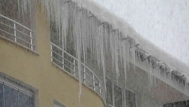 Bingöl’de son 1 haftadır etkili olan kar yağışı ve beraberinde gelen soğuk hava, binaların çatılarında buz sarkıtları oluşturdu. Vatandaşlar içi tehlike arz eden sarkıtların birçoğunun boyu 1 metreyi buldu.