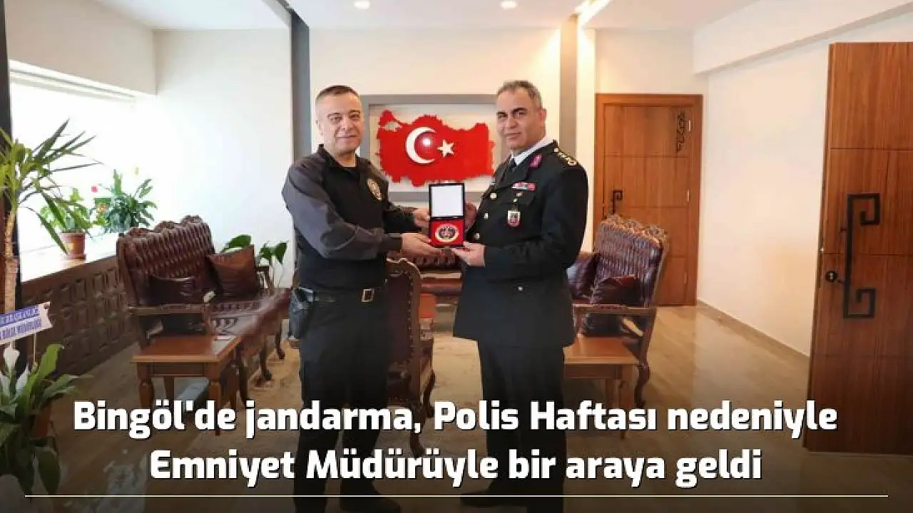 Türk Polis Teşkilatının 177. kuruluş yıl dönümü ve 10 Nisan Polis Haftası etkinlikleri çerçevesinde, Bingöl İl Jandarma Komutanı Jandarma Albay Gökhan Şahin ve İl Jandarma Komutanlığı çalışanları, İl Emniyet Müdürü Ali Canbolat’ ı ziyaret etti. Kentin emniyet ve asayişinin sağlanması noktasında omuz omuza görev yapan iki kurum çalışanları ziyaret esnasında sohbet etti.