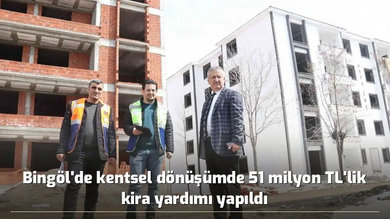 Bingöl'de Kentsel Dönüşüm Kanunu çerçevesinde 5 binin üzerindeki vatandaşa toplamda 51 milyon 818 bin TL kira yardımı yapıldı.