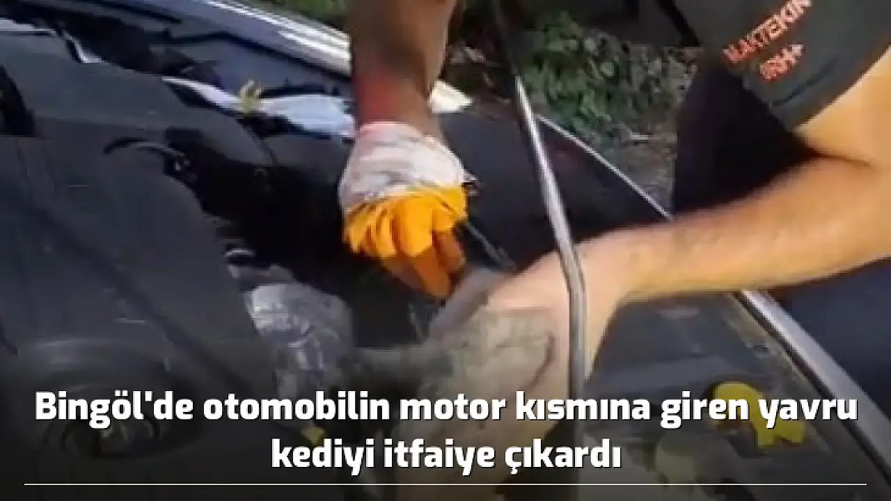 Bingöl'ün Genç ilçesinde otomobilin motor kısmına giren ve mahsur kalan yavru kediyi itfaiye ekipleri çıkardı.