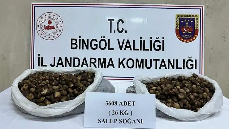 Bingöl İl Jandarma Komutanlığı ekipleri tarafından yürütülen istihbari çalışmalar sonucu, ’nesli tükenmekte olan yabani bitki ve hayvan türlerinin korunması’na yönelik yürütülen çalışmalar çerçevesinde, koruma altında ve endemik bir tür olan salep soğanı bitkisini yasa dışı olarak toplayan ve ticaretinin yapıldığı tespit edilmesi üzerine operasyon başlatıldı. Bingöl merkez ilçe kırsalında durdurulan araç içerisinde yapılan kontrolde çuval içerisinde 3 bin 608 adet salep soğanı bitkisi ele geçirildi. Konu ile ilgili Bingöl Doğa Koruma ve Milli Parklar Müdürlüğüne bilgi verilirken, şüpheli Ü.E. ve S.S. isimli şahıslar hakkında 2872 sayılı Çevre Kanunu hükümleri doğrultusunda toplamda 488 bin 630 Türk lirası para cezası kesildi. Ele geçirilen salep soğanı bitkilerinin neslinin korunması amacıyla tekrardan doğaya ekileceği öğrenildi.