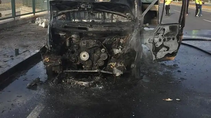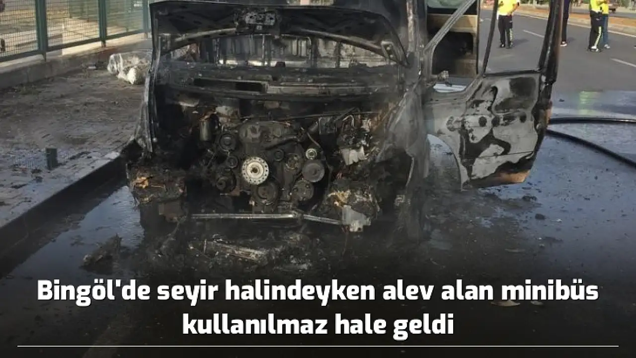 Bingöl'de seyir halindeyken alev alan minibüs kullanılmaz hale geldi.