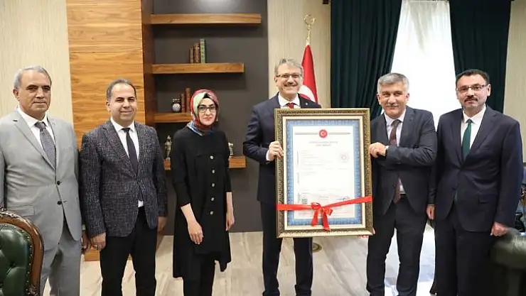 Ziyarette Tapu ve Kadastro Bölge Müdürü Mahir Tuncer ve beraberindeki heyete teşekkür ederek çalışmalarında başarılar dileyen Vali Ekinci’ye yeni Hükümet Konağı’nın yeni nesil ’Karekodlu’ tapu senedi takdim edildi.