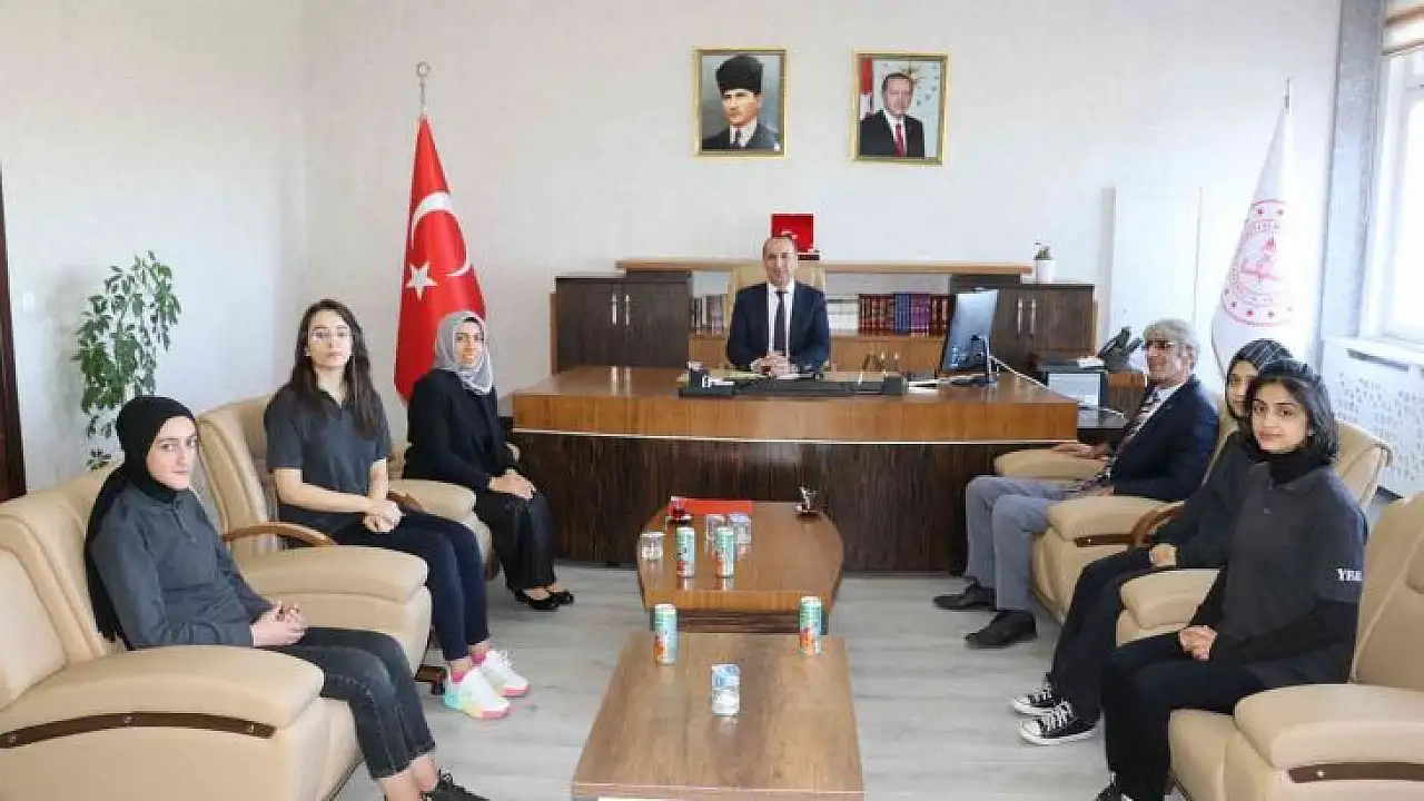 Projede yer alan danışman öğretmen Hülya Buyankara ile öğrenciler Ebrar Canlı, Mihriban Güçden, Aleyna Dursun ve Elif Dener’i İl Milli Eğitim Müdürü Halil Yücel makamında kabul etti. Yapmış oldukları proje hakkında bilgi alan Yücel, öğretmen ve öğrencileri tek tek tebrik ederek çeşitli hediyeler takdim etti. Yücel, "Bu proje bizi gururlandırmıştır. Bu yıl Bingöl’de hem öğretmenlerimiz hem de öğrencilerimiz bizlere bu tür birincilikler getirerek tüm eğitim camiamıza örnek olmuştur. Projede emeği geçen hem öğretmen hem öğrenci hem de idarecilerimize teşekkür ediyorum. Bu başarı diğer okullarımıza da örnek olacaktır" dedi.