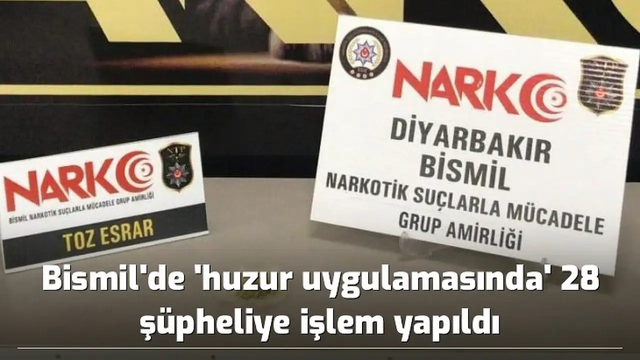 Diyarbakır'ın Bismil İlçe Emniyet Müdürlüğüne bağlı ekiplerce gerçekleştirilen 'huzur asayiş uygulamaları' çerçevesinde 28 şüpheli hakkında işlem başlatıldı.