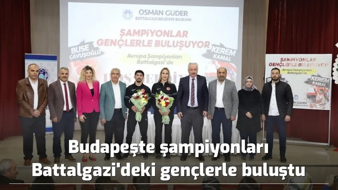 Malatya'nın Battalgazi Belediyesi tarafından 'Şampiyonlar Gençlerle Buluşuyor' programı çerçevesinde Macaristan'da düzenlenen Avrupa Güreş Şampiyonası'nda madalya ile dönen milli güreşçi Kerem Kamal ve Buse Tosun Çavuşoğlu, spor hayatlarında başarıya giden yolu Battalgazi'deki gençlerle paylaştı.