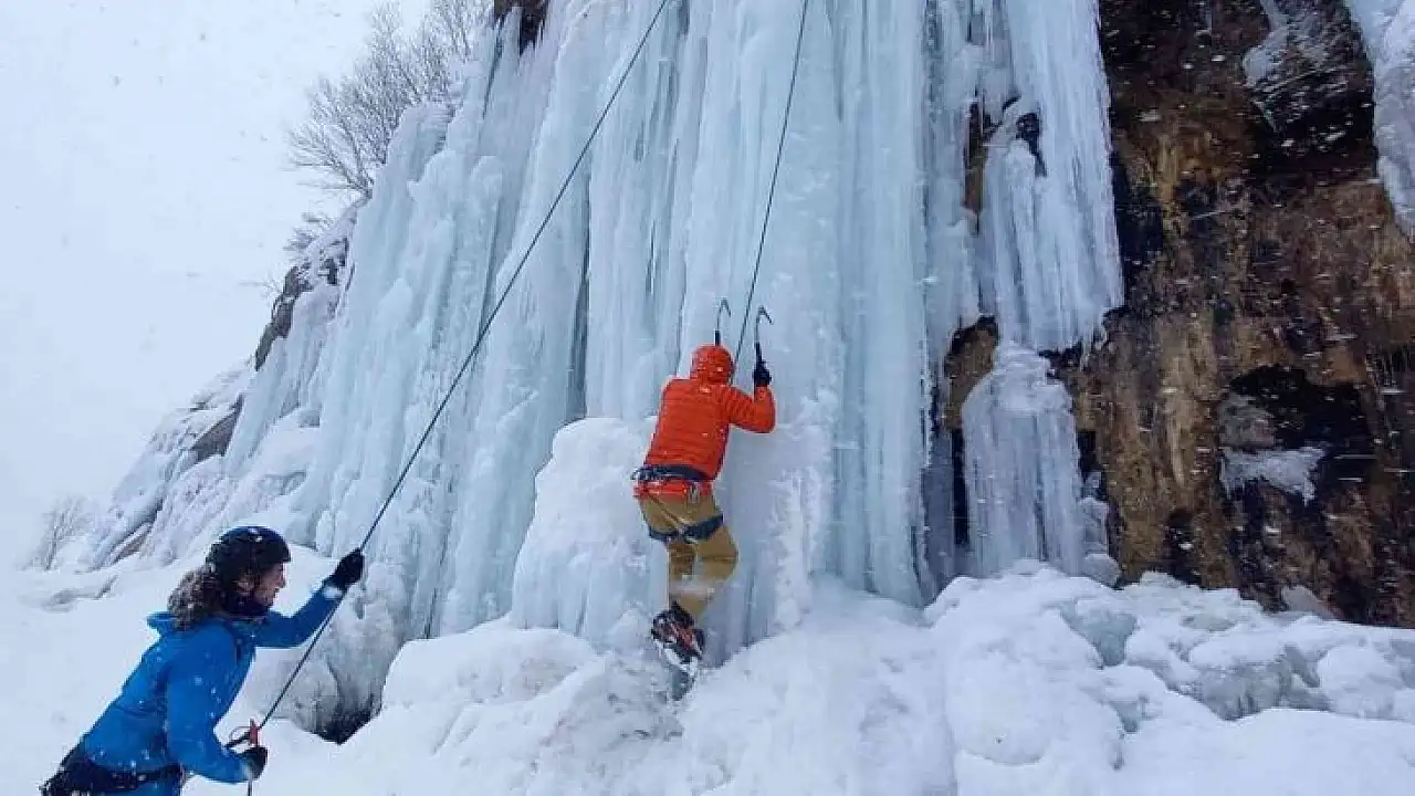 Tunceli'de bir grup sporcu, buz tutan Ağlayan Kayalar şelalesine ilk buz tırmanışı gerçekleştirdi.