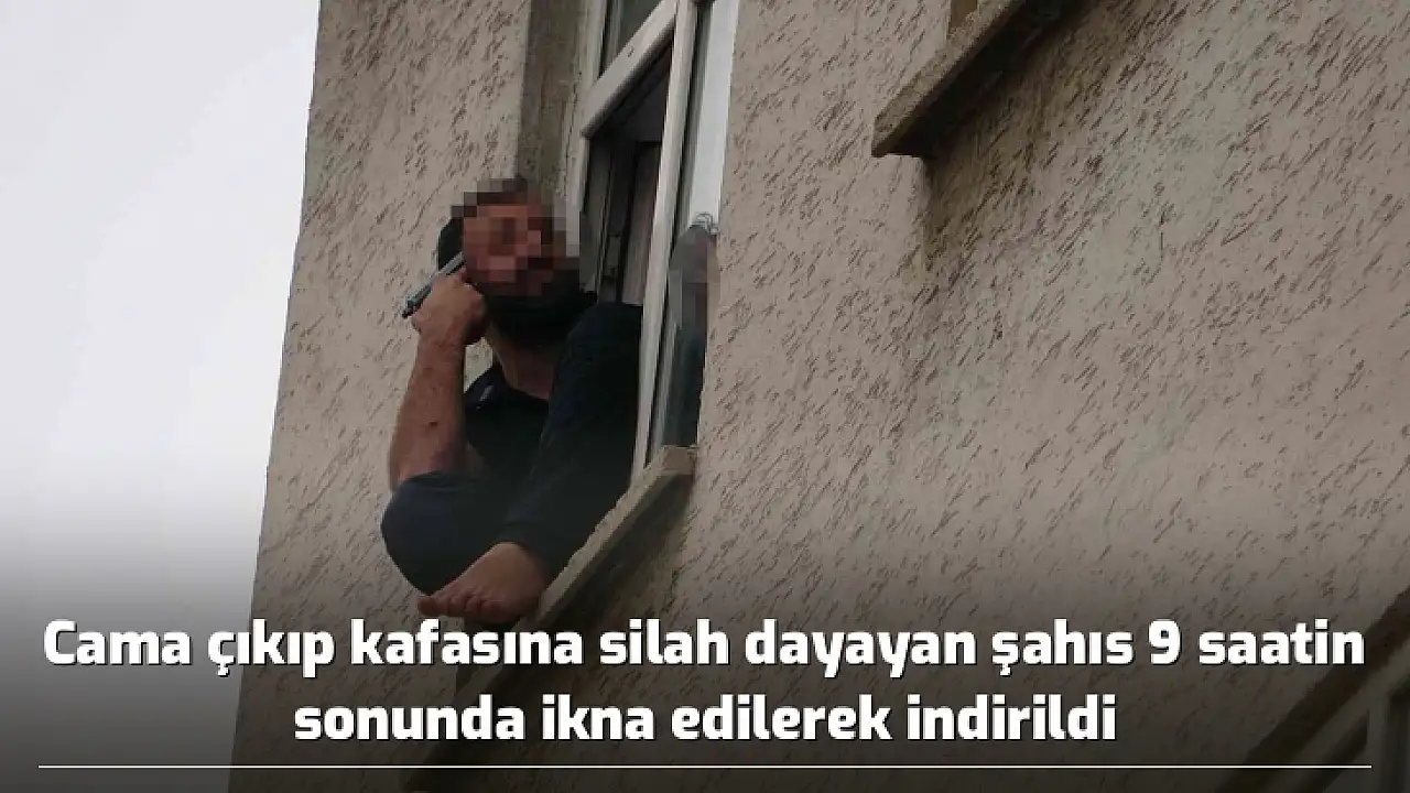 Elazığ'da gece cama çıkıp kafasına silah dayayan şahıs, 9 saat süren çalışmalar sonucu ikna edilerek camdan indirildi.