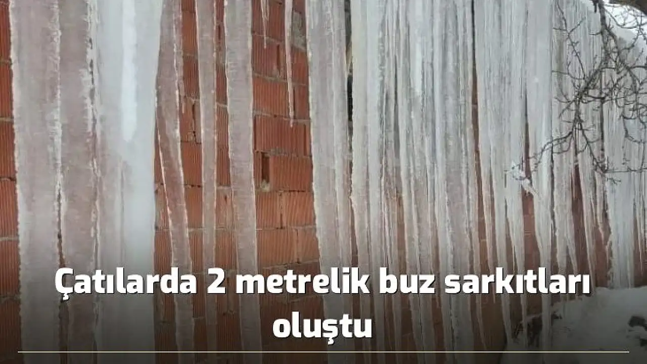 Elazığ’da etkili olan soğuk hava nedeniyle evlerin çatılarında boyları 2 metreyi bulan buz sarkıtları oluştu.