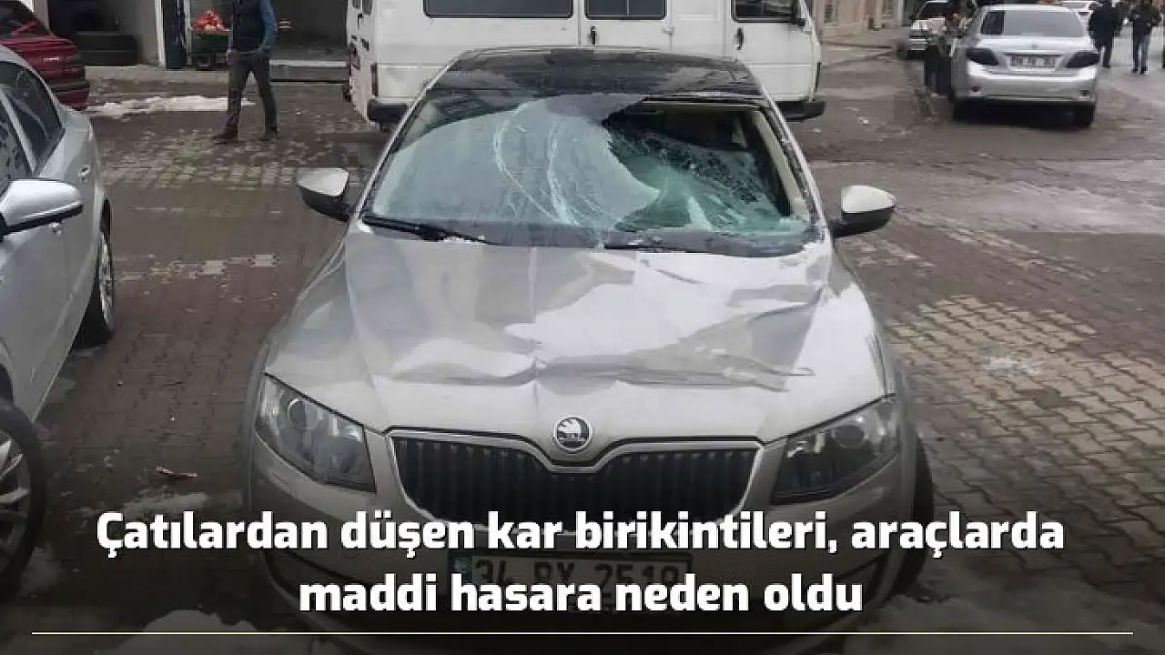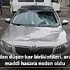 Çatılardan düşen kar birikintileri, araçlarda maddi hasara neden oldu