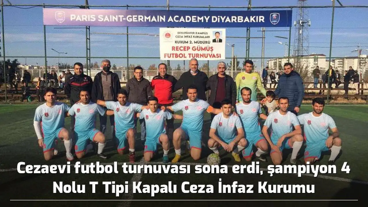 Diyarbakır'da, Açık Ceza İnfaz Kurumu Müdürü Recep Gümüş adına düzenlenen futbol turnuvası final karşılaşmasıyla sona erdi. 4 Nolu T Tipi Kapalı Ceza İnfaz Kurumu, şampiyonluğa uzanan taraf oldu.