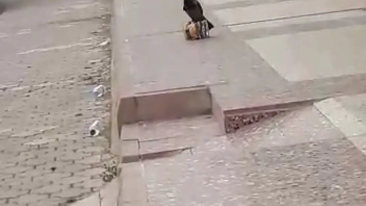 Elazığ'da bir marketten cips çalan karga, çaldığı yiyeceği kaldırımda açıp yedi. O anlar bir vatandaş tarafından görüntülendi.