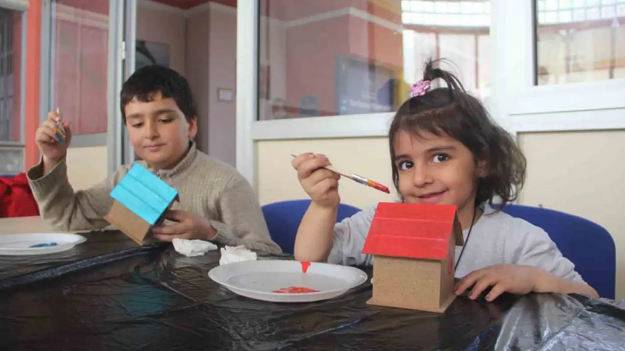 Usta Öğretici İlknur Okur ise, "Halk Eğitim Merkezi olarak buraya depremzede çocuklarımız için etkinliğe geldik. Ahşap boyama yapıyoruz. Psiko-sosyal olarak destek veriyoruz ve etkinlikler yapıyoruz. Çok eğlendiler ve çok mutlular. Onlar mutlu olunca biz de mutlu oluyoruz" diye konuştu.