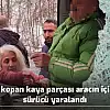 Dağdan kopan kaya parçası aracın içine girdi, sürücü yaralandı
