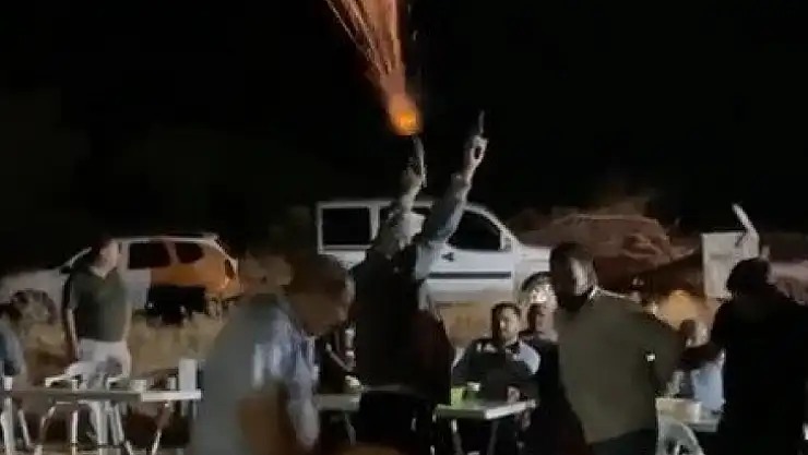 Elazığ'da asker eğlencesinde bir şahıs, halay çekildiği sırada eline aldığı iki silahla davula ritim tutarak havaya ateş açtı.