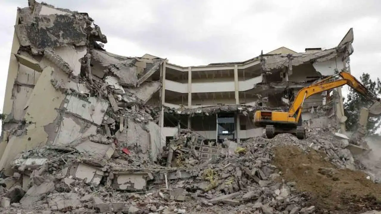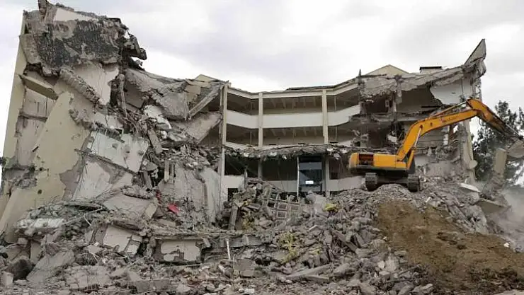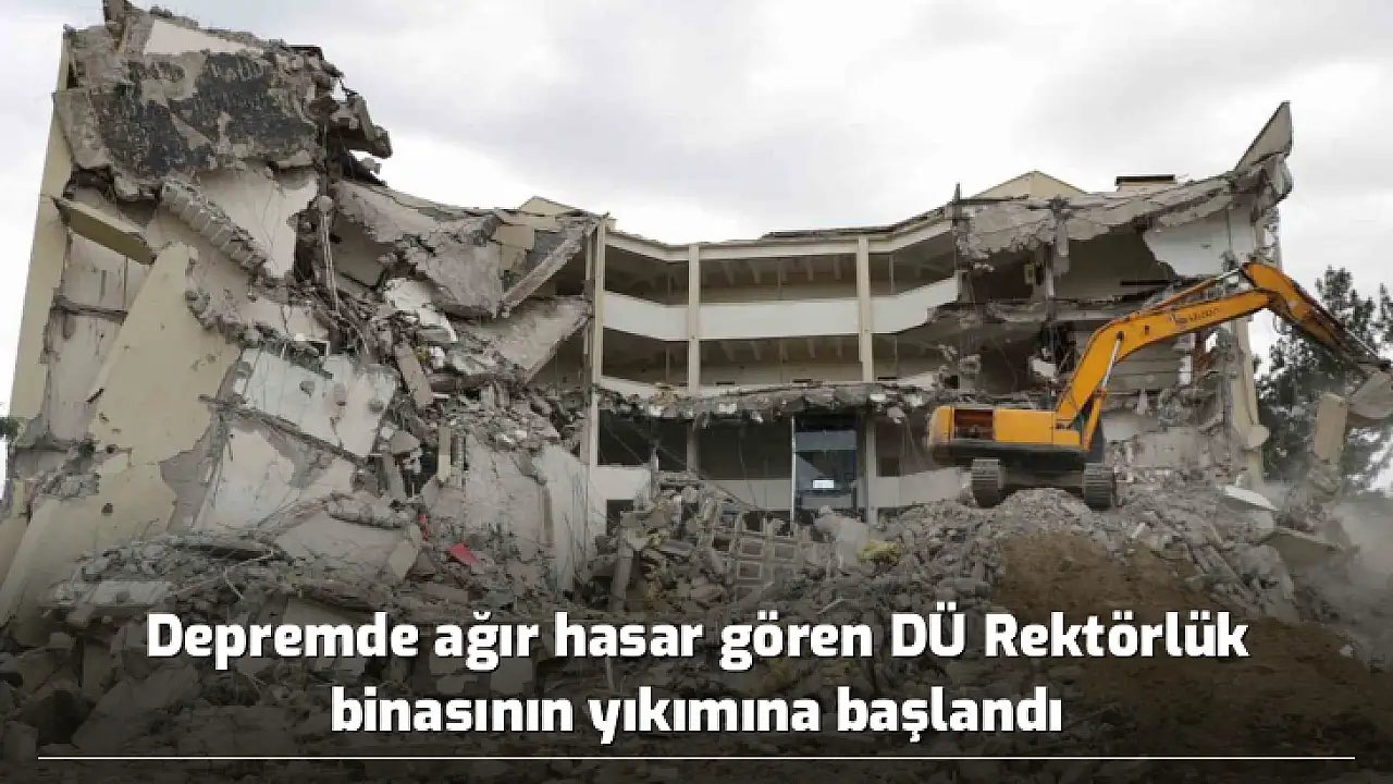 - Depremde ağır hasar gören DÜ Rektörlük binasının yıkımına başlandı