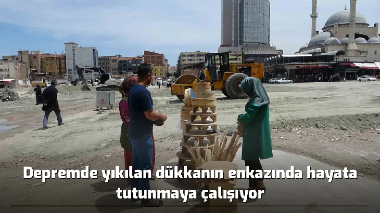 Malatya'da 6 Şubat'taki depremlerde iş yeri yıkılan 28 yaşındaki esnaf Sevilay Dirican, enkazı kaldırılan iş yerinin bulunduğu noktada babasının ürettiği ahşap ürünleri satarak hayata tutunmaya çalışıyor.