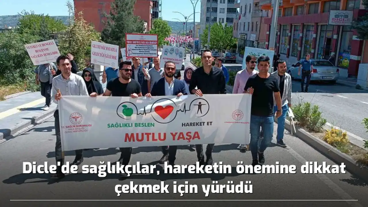Diyarbakır'ın Dicle ilçesinde sağlıkçılar, 'Sağlık İçin Hareket Et Günü' çerçevesinde sağlıklı yaşama dikkat çekmek için yürüdü.