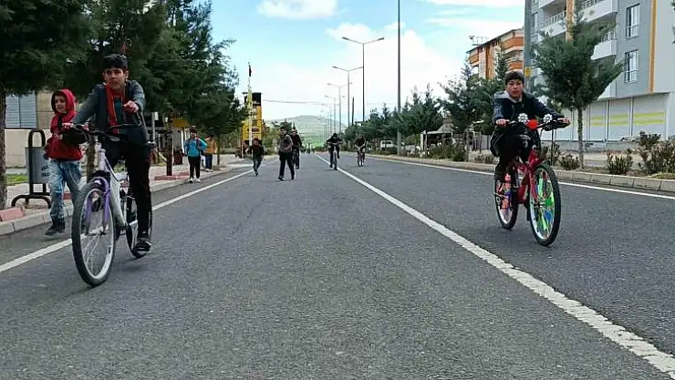 Dicle ilçesi merkez Fatih İlk ve Ortaokulu tarafından düzenlenen etkinlikte, okulda eğitim gören birçok öğrenci, öğretmenleriyle birlikte trafik güvenliğine ve sağlıklı yaşama dikkat çekmek için pedal çevirdi.
