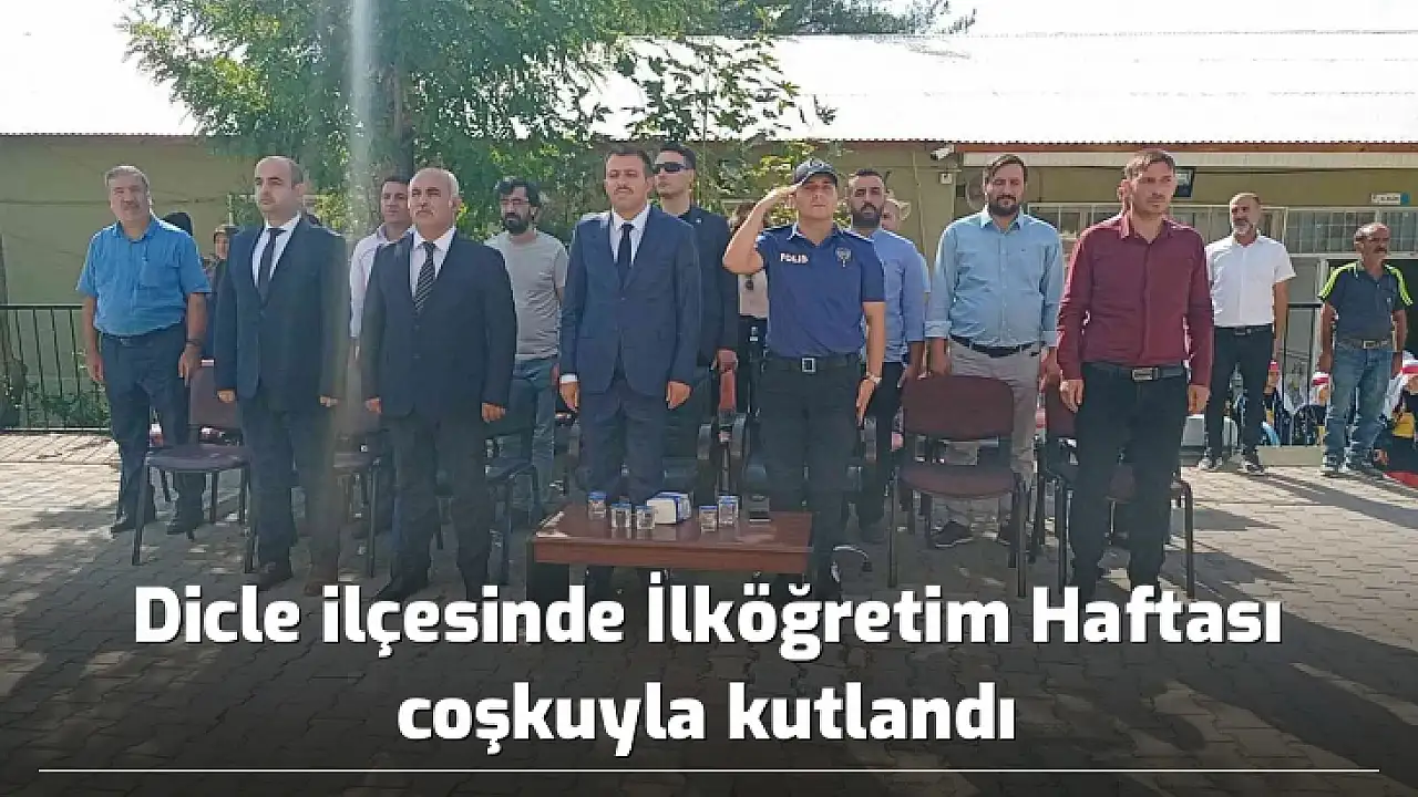 Dicle ilçesinde düzenlenen İlköğretim Haftası etkinliklerinin ilki hükümet konağı bahçesinde yapıldı. İlköğretim Haftası kutlama programını Cumhuriyet İlkokulu sınıf öğretmeni Hacer Yılmaz Aykutbay sundu. Buradaki programda Atatürk büstüne ilçe milli eğitim müdürlüğü çelengi bırakıldı. İlköğretim Haftası kutlama programı daha sonra Dicle Cumhuriyet İlkokulu’nda düzenlenen bir dizi etkinliklerle devam etti. Okul bahçesindeki kutlama programına Dicle Kaymakamı Kadir Yurdagül, İlçe Milli Eğitim Müdürü Muhammed Ensari, İlçe Emniyet Amiri Ömür Yılmaz, İlçe Tarım ve Orman Müdürü Murat Ödoğlu, Dicle Halk Eğitimi Merkezi Müdürü Mustafa Sabır, İlçe Sağlık Müdürü Musab Güner, İlçe Milli Eğitim Şube Müdürü Hakan Narlayan, Cumhuriyet İlkokulu Müdürü Murat Aktan, öğrenci, öğretmen ve veliler katıldı.