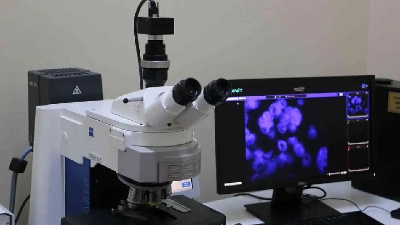 Dicle Üniversitesi Tıp Fakültesi Patoloji Anabilim Dalı’nda çalışan Dr. Selver Özşener, 20 günde çıkan patoloji sonuçlarının süresinin FISH cihazı ile bir haftaya düştüğünü belirtti. Özşener, “Floresan in situ hibridizasyon (FISH), solit tümör dediğimiz lösemi ve lenfomalar dışındaki akciğer, böbrek, kaslarda çıkan tümörlerdeki genetik mutasyonları araştırmak için kullandığımız bir yöntem. FISH analizinde FISH’e özgü floresan mikroskop ve bir yazılımdan faydalanıyoruz. Öncelikle tümör hücrelerini ışık mikroskobunda seçiyoruz, daha sonra onlar üzerinde eşleştirmeyi yapıp, arkasından da burada incelememizi tamamlıyoruz. Sonrasında uluslararası dünyaca da belirlenmiş standartlar var. Belirli sayıda hücreyi sayıyoruz, belli sayıda eşit değerimiz ve katof değerimiz bulunmakta. O değeri bulunca da pozitif diyoruz. Bu esnada onkolog arkadaşımız hastaya akıllı ilaç tedavisine başlıyor” diye konuştu.