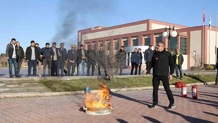 Verilen teorik eğitimlerin ardından üniversite personelinin katılımıyla yangın tatbikatı yapıldı.