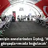 Tek isteklerinin evlatları olduğunu belirten anne Üçdağ, “Oğlum HDP tarafından kandırılarak PKK’ya teslim edildi. 23 hatim ezberleyen bir çocuk, onlarla işi olmaz. Kürt davası diyorlar böyle olmaz, olamaz da. Çocuklarımız ve Kürtler üzerinden oyun oynadılar, bizi kullanıyorlar. Çocuklarımızı hedef ettiler, neden kendi çocuklarını göndermiyorlar. HDP milletvekillerine sesleniyorum, kanlı ellerinizi çocuklarımızın üzerinden çekin. 8 yıldır evladımdan ayrıyım, sesini duymadım, keşke kavuşsaydım, kokusunu bile özledim. Gelin güvenlik güçlerimize teslim olun, çocuklarımız dağda ölmesinler. Ben burada kendi evladım için değil, tüm Türkiye için nöbet tutuyorum. Çünkü Kandil’in yolunu kestik, evlatlarımız artık gitmiyor, eminiz ki evlatlarımız dönecek ve zafer annelerin olacak. HDP gözyaşlarımızda boğulacak, oğlumu bana verin, 3 yıldır bu hainlerin kapısındayım, bunu iyi bilsinler ki gitmeyeceğim” dedi.