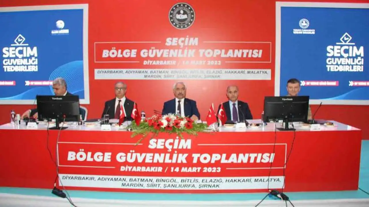 Diyarbakır’da, İçişleri Bakan Yardımcısı Mehmet Ersoy ve Emniyet Genel Müdürü Mehmet Aktaş, Jandarma Genel Komutanlığı Asayiş Başkanı Tümgeneral Ferdi Korkmaz, İstihbarat Başkanı Tümgeneral Ahmet Kavukçu’nun katılımıyla Vali Ali İhsan Su’nun ev sahipliğinde, 14 Mayıs 2023 tarihinde gerçekleşecek olan Cumhurbaşkanlığı seçimi ve milletvekili genel seçimlerinde vatandaşların özgür iradelerini sandığa yansıtması için güvenlik konusu masaya yatırıldı.