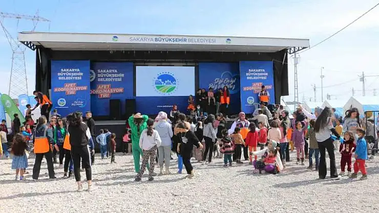 Çadır kentte görevli AFAD ve Kızılay gönüllüleri, çocuklarla müzik eşliğinde eğlenerek çeşitli oyunlar oynadı ve yüz boyama etkinlikleri gerçekleştirdi.