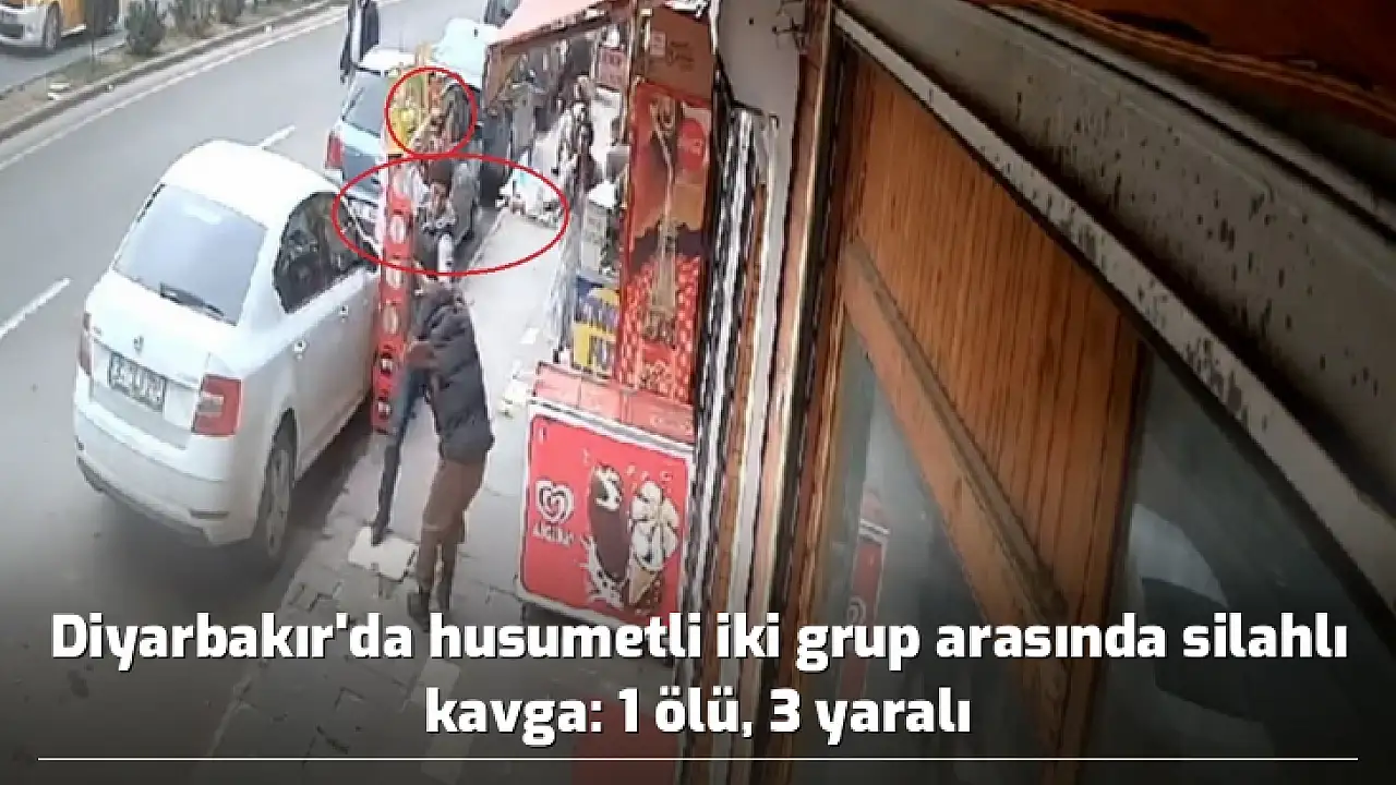 Diyarbakır'ın Sur ilçesinde husumetli iki grup arasında çıkan silahlı kavgada 1 kişi öldü, 3 kişi yaralandı. Olay ile ilgili bir kişi gözaltına alınırken, olay anı güvenlik kamerasına yansıdı.