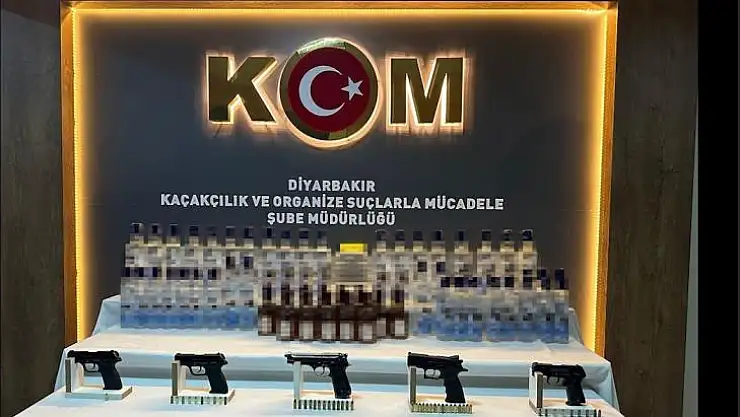 Diyarbakır İl Emniyet Müdürlüğü Kaçakçılık ve Organize Suçlarla Mücadele Şube Müdürlüğü ekipleri tarafından yapılan operasyonda kaçak alkol, tabanca ve mermi ele geçirilirken, 5 şüpheli gözaltına alındı.