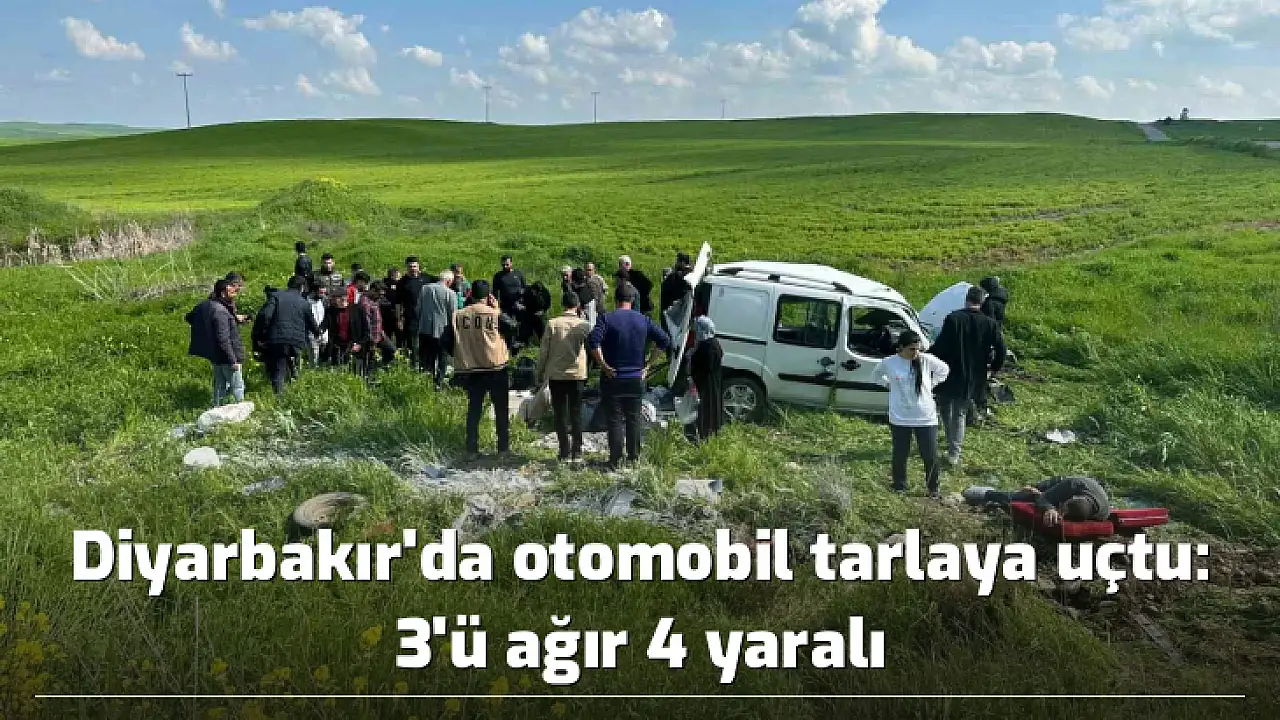 Diyarbakır'da direksiyon hakimiyetini kaybeden bir otomobilin sürücüsü yoldan çıkarak tarlaya uçtu. Kazada 3'ü ağır 4 kişi yaralandı.