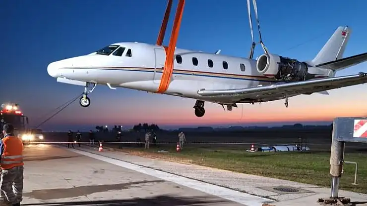 Diyarbakır Havalimanı'na iniş yaptığı sırada pistten çıkan özel jet, yaklaşık 9 saatlik çalışmayla kaza yerinden kaldırıldı.