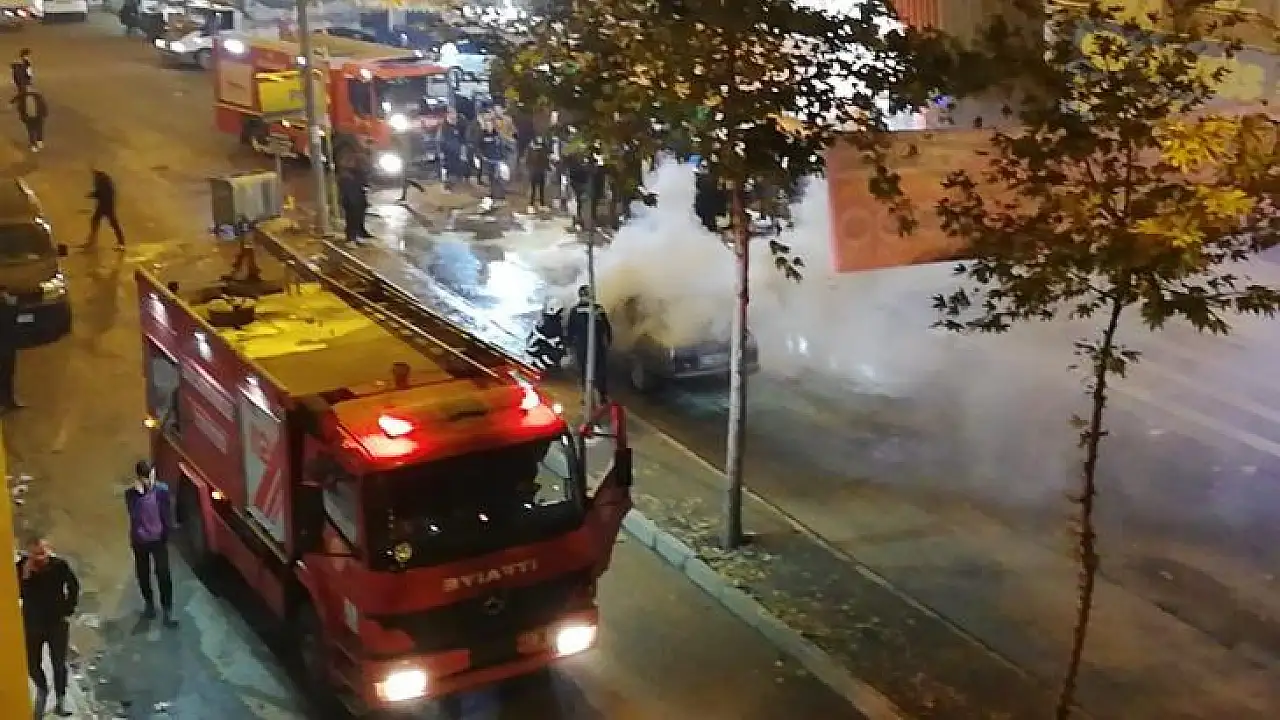 Diyarbakır'ın Bismil ilçesinde seyir halindeki otomobil yol ortasında alev aldı.