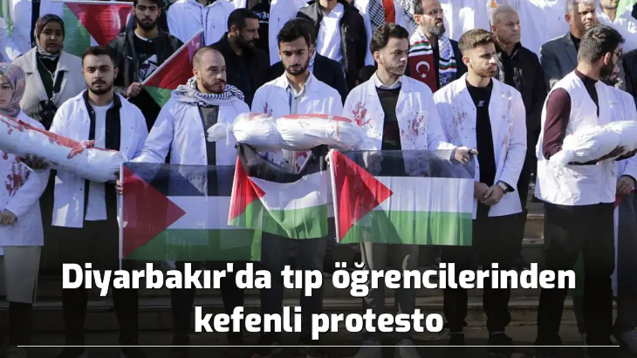 Diyarbakır'da, Dicle Üniversitesi Tıp Fakültesi öğrencileri ile sağlık çalışanları İsrail'in Filistin'deki hastaneleri hedef almasına yönelik kefenli protesto gerçekleştirdi.